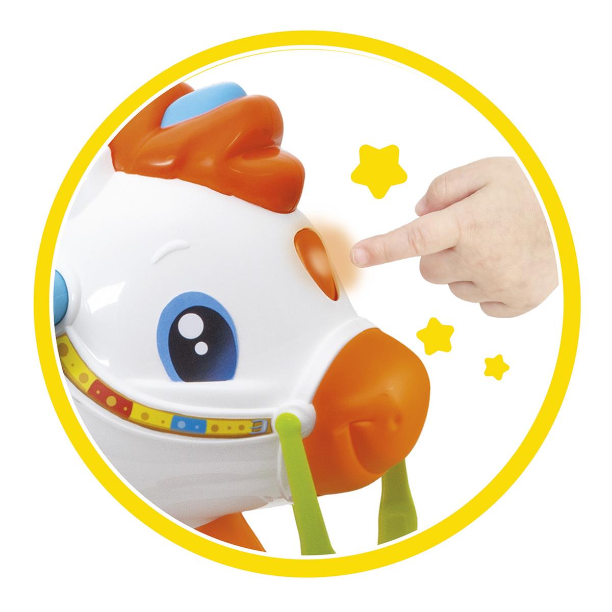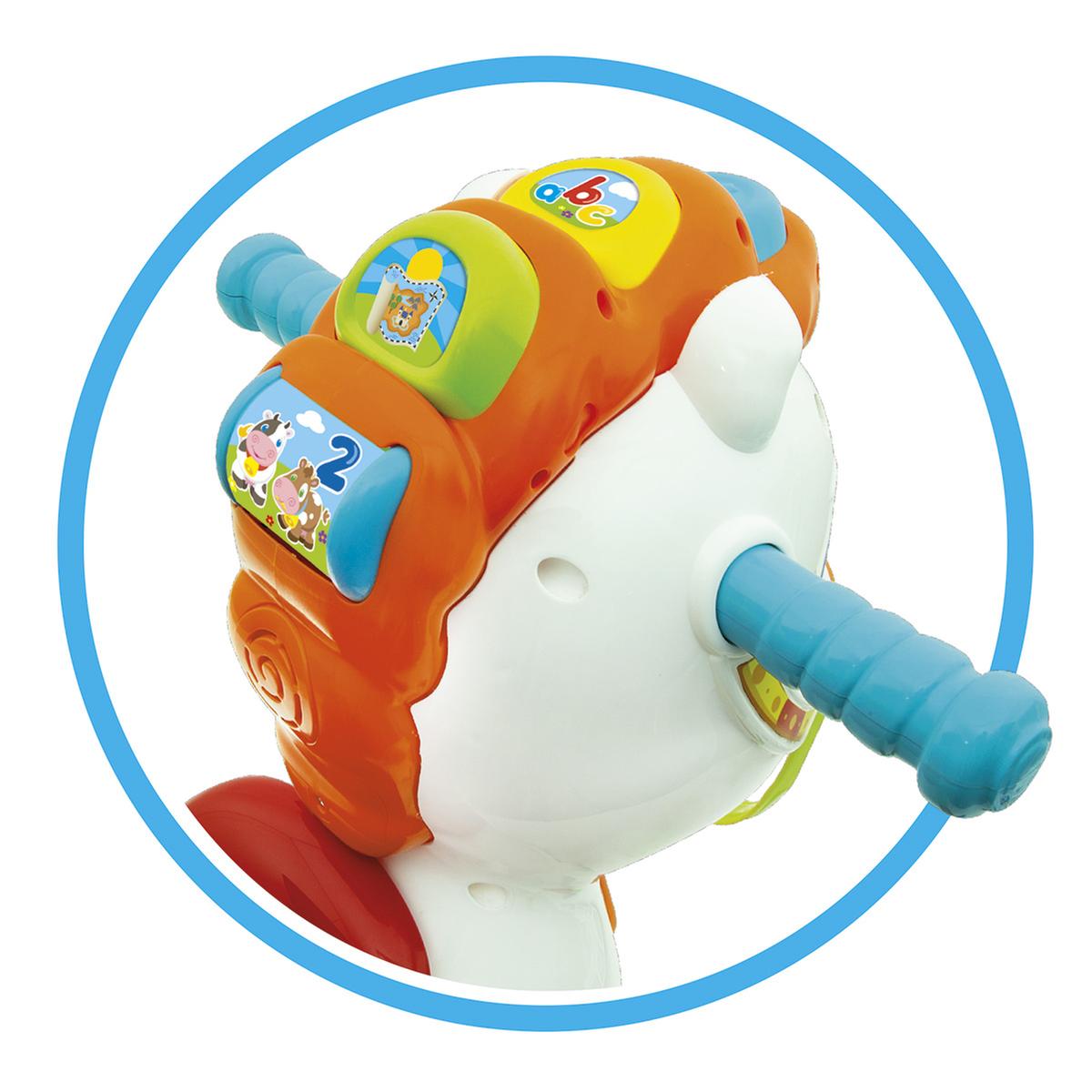 Las crines educativas enseñarán al niño las letras, los números, los colores, los nombres y los sonidos de los animales en español, ¡con rimas y canciones!